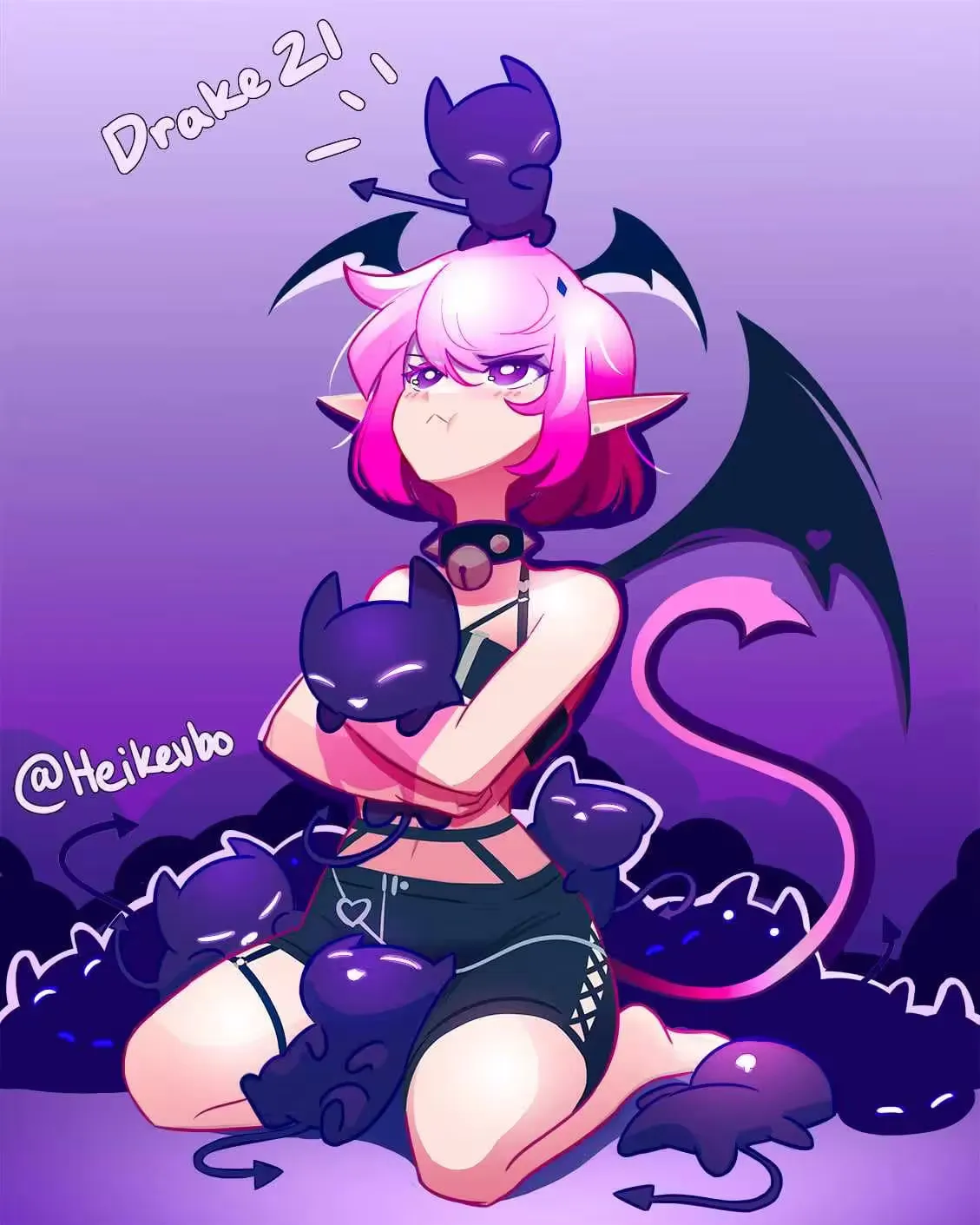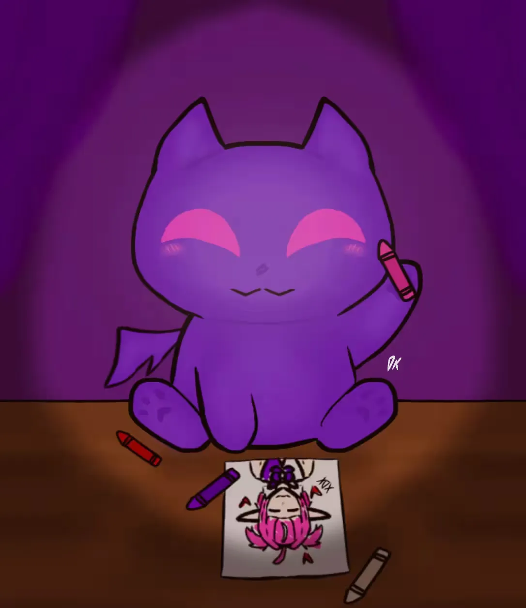 在Cimp 发展为今日广为人知的紫色猫型小恶魔形象之前,曾存在一个被后人称为 Proto-Cimp 的早期阶段。一只神秘的黑猫,拥有闪烁着粉紫光芒的眼睛,在昏暗环境中尤为醒目。(超级可爱,对吧)由于其眼部特征极具穿透感,部分观众曾以蝙蝠猫(bat cat)称呼这一形象。